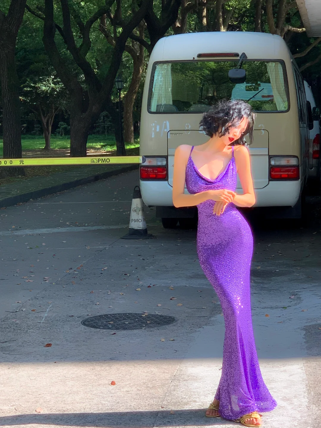 Sexy Shiny Purple Mermaid Straps Sequin Long Prom Dress Vacation Dress HZ1023