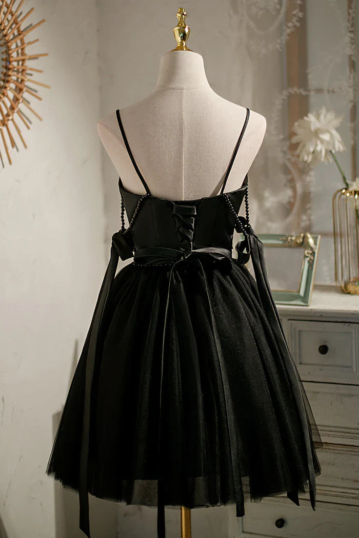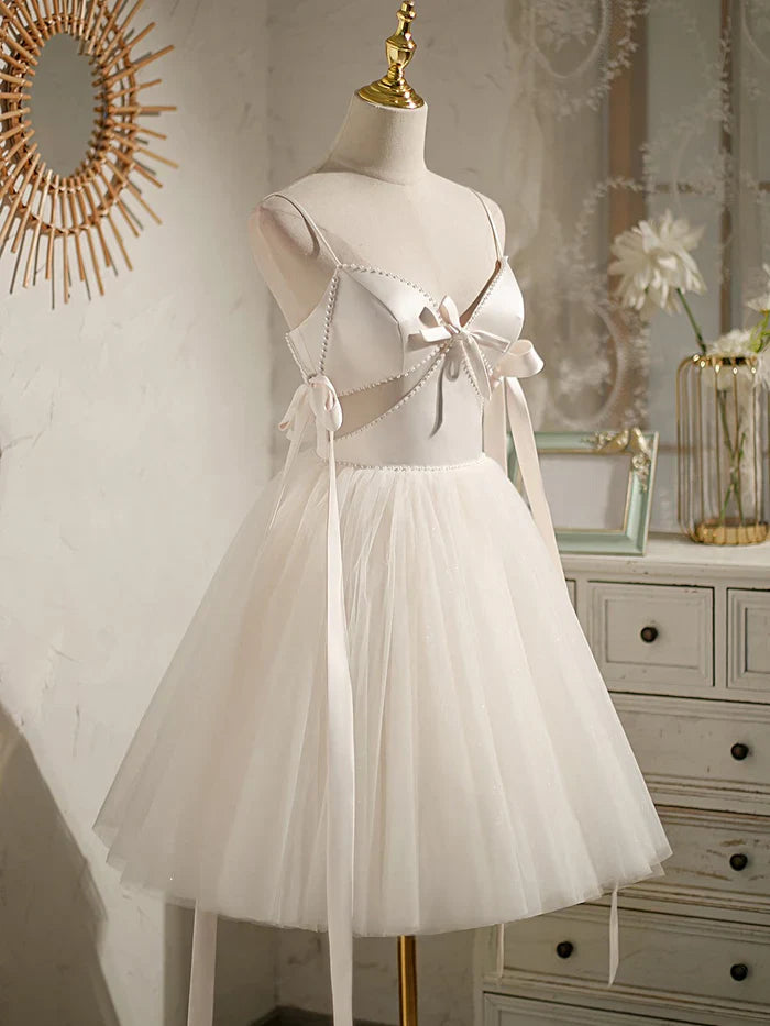 Sexy Spaghetti Straps Beading Satin Bow Short Homecoming Dresses HZ1023