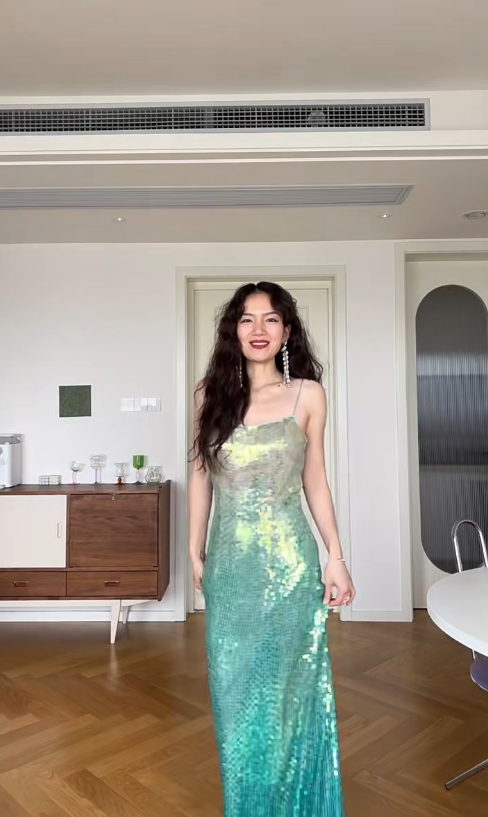Shiny Blue Ombre A Line Spaghetti Strap Sequin Prom Dress Wedding Guest Dress HZ1023