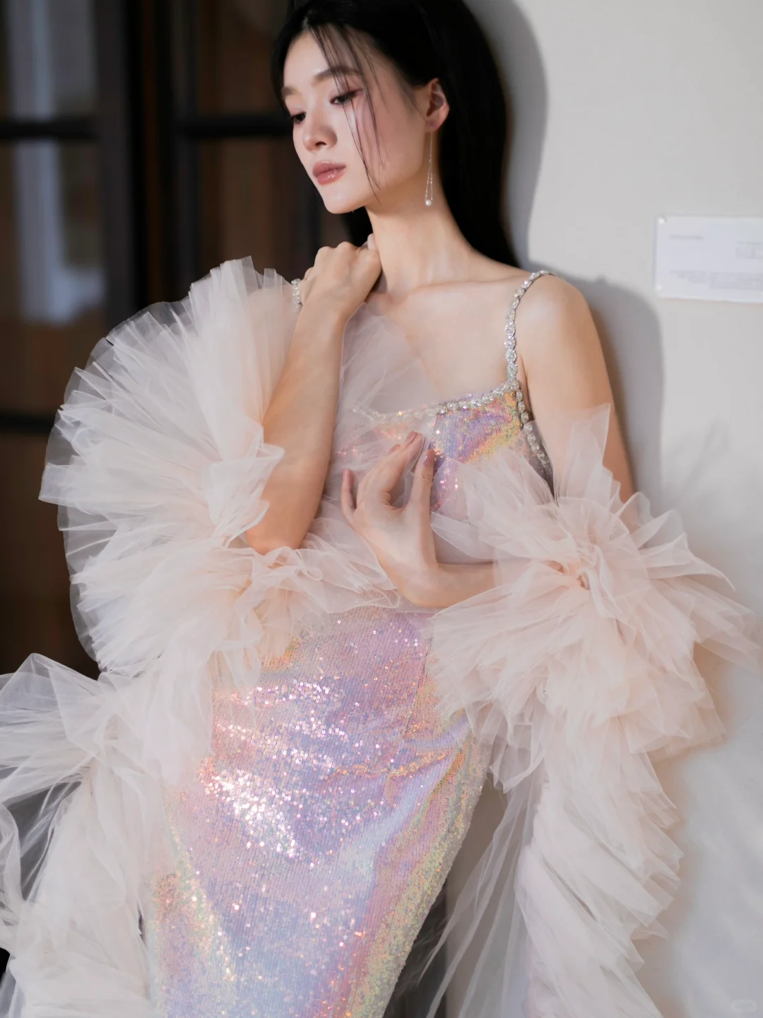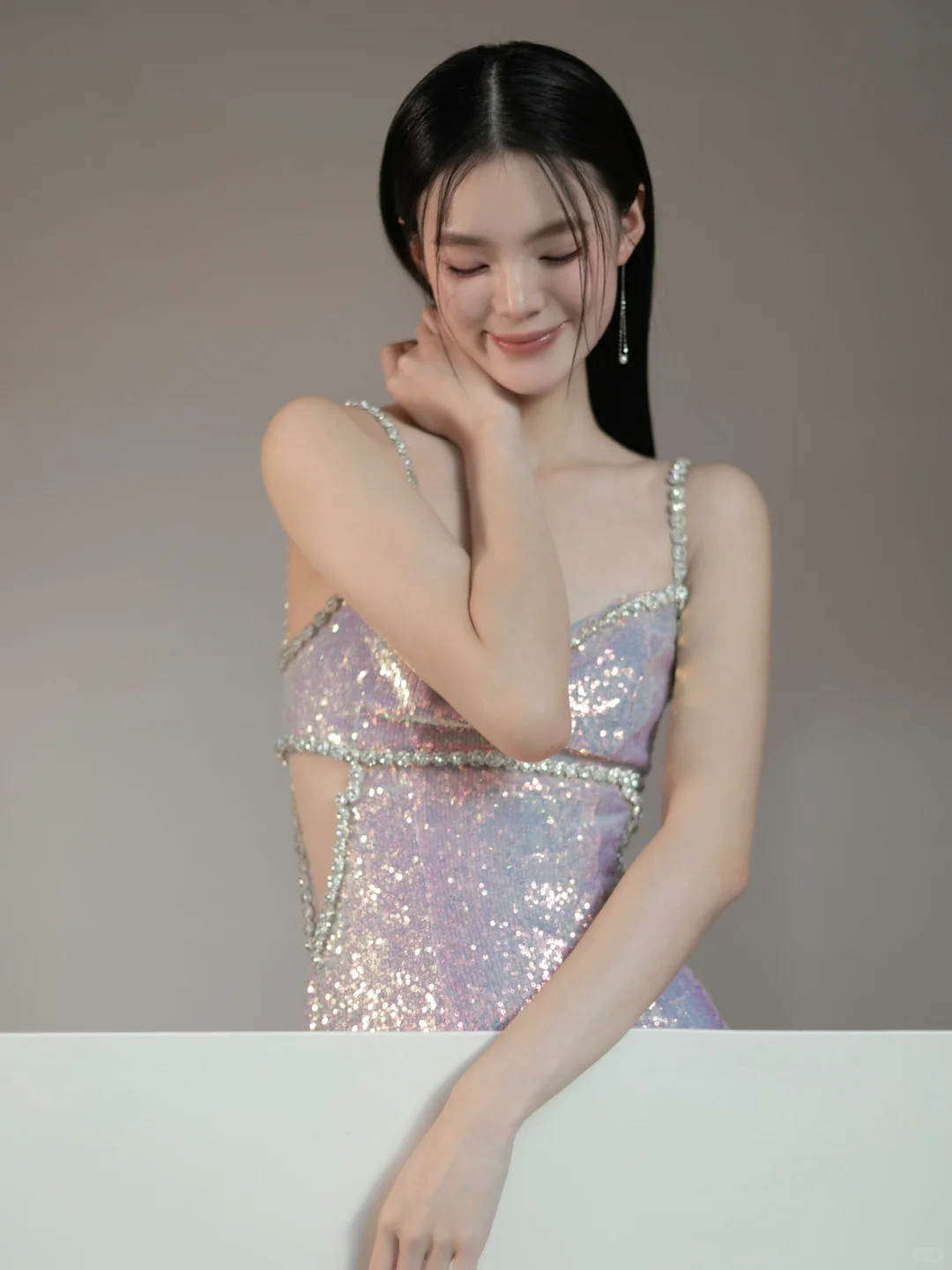 Shiny Pink Sheath Straps Rhinestone Sequin Prom Dress Evening Dress Party Dress HZ1023