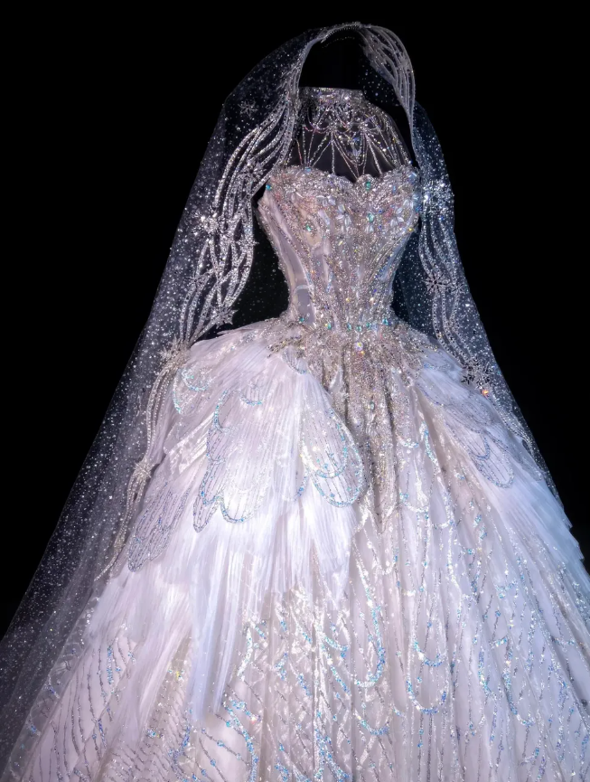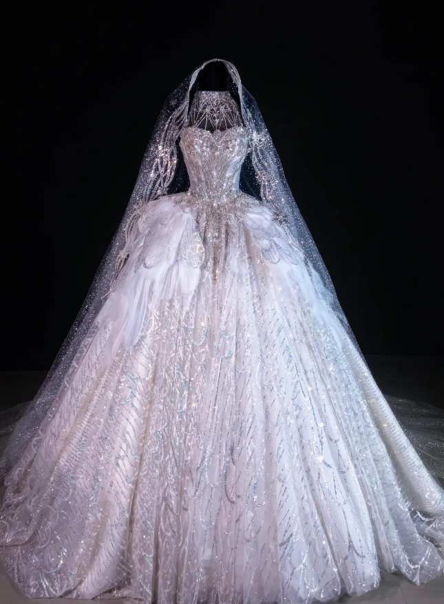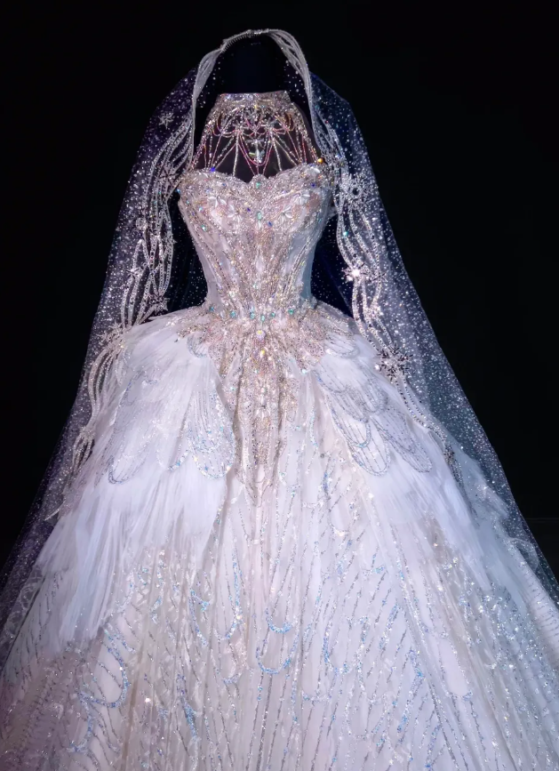 Silver Ball Gown Halter Rhinestone Sequin Tulle Long Prom Dress HZ1023
