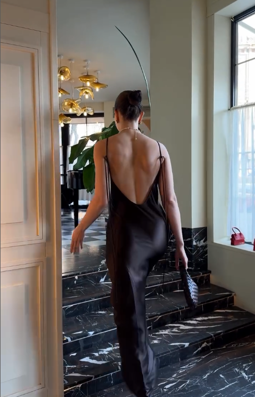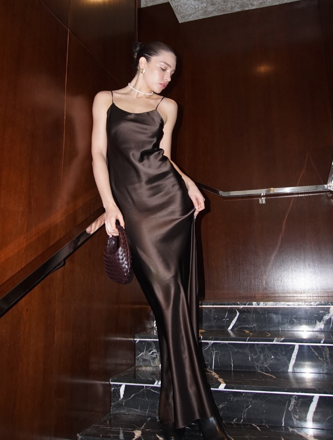 Simple Black A Line Spaghetti Strap Satin Open Back Prom Dress Wedding Guest Dress HZ1023