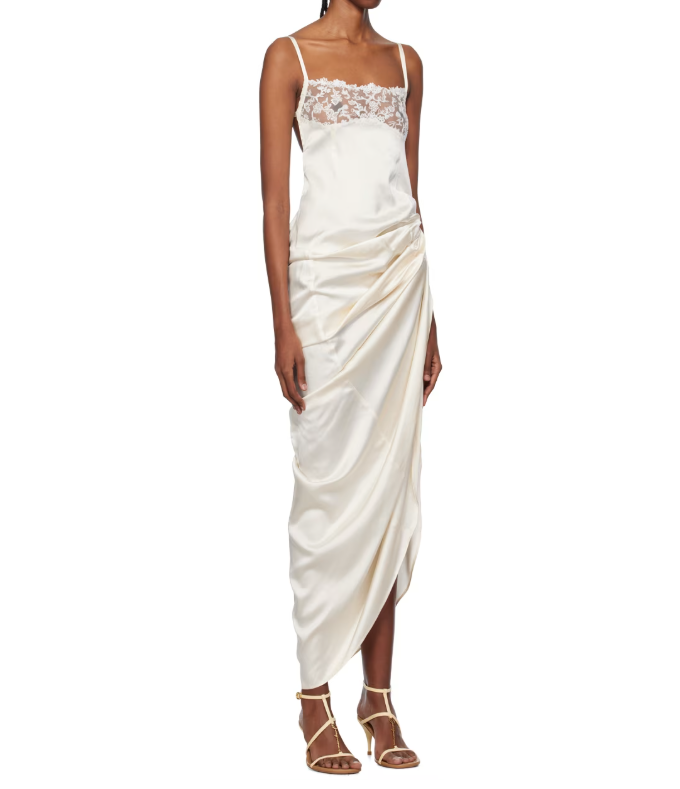Simple Sheath Spaghetti Straps Pleated Lace Satin Open Back Prom Dress Party Dress HZ1023
