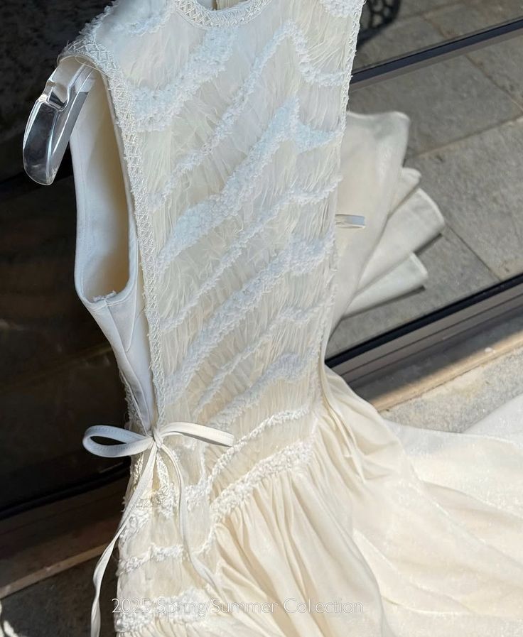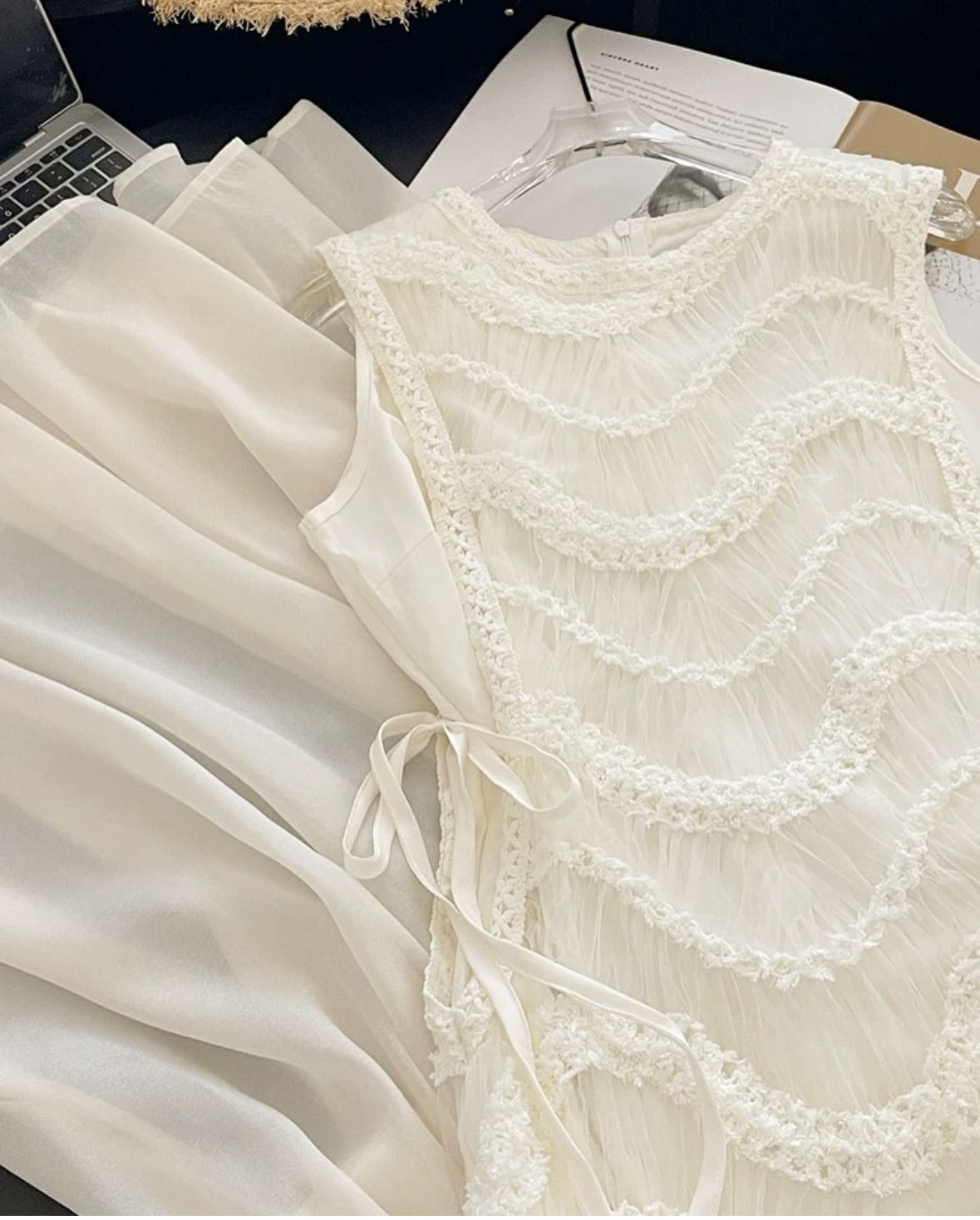 Simple White A Line Round Neck Lace Chiffon Party Dress Outfits HZ1023