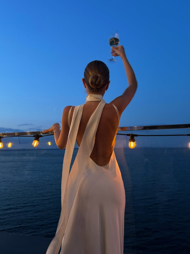 Simple White A Line Spaghetti Strap Satin Open Back Prom Dress Wedding Guest Dress HZ1023