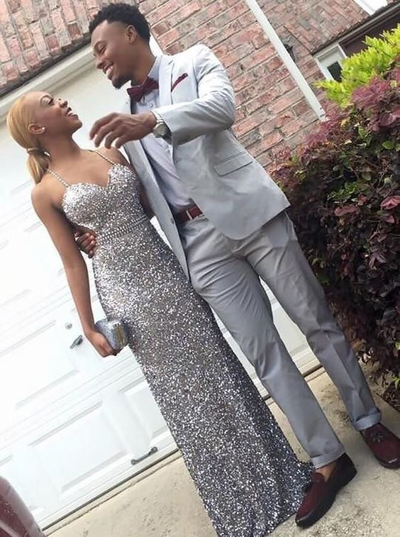 Sparkly Silver Sequin Beaded Party Evening Dress Backless Prom Dress HZ1023
