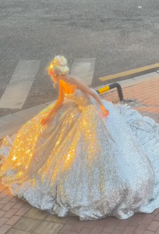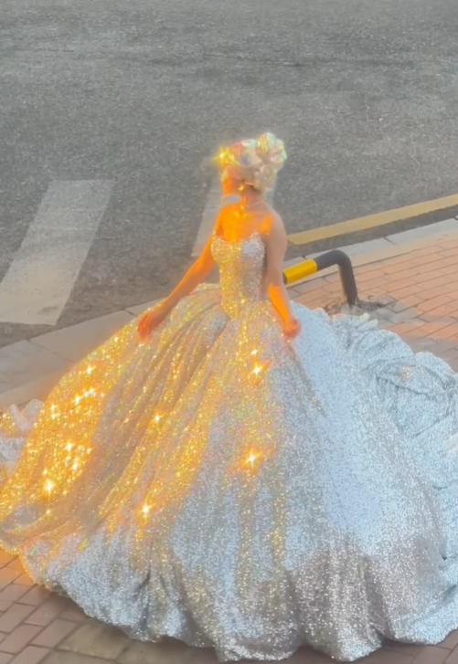 Stunning A Line Strapless Silver Sequin Long Prom Dress Graduation Prom Dress HZ1023