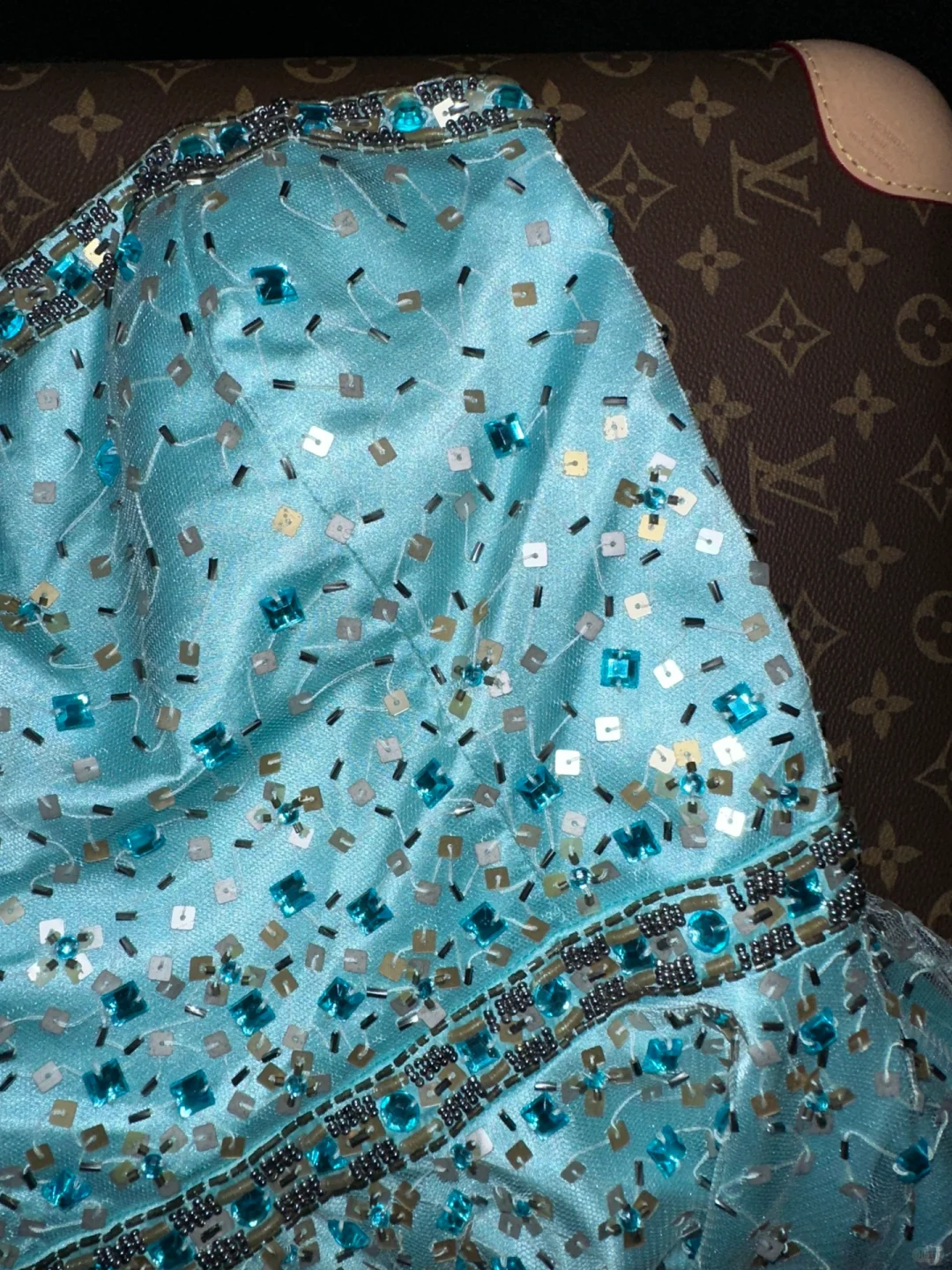 Stunning A Line Sweetheart Neck Beaded Blue Tulle Satin Party Dress Wedding Guest Dress HZ1023