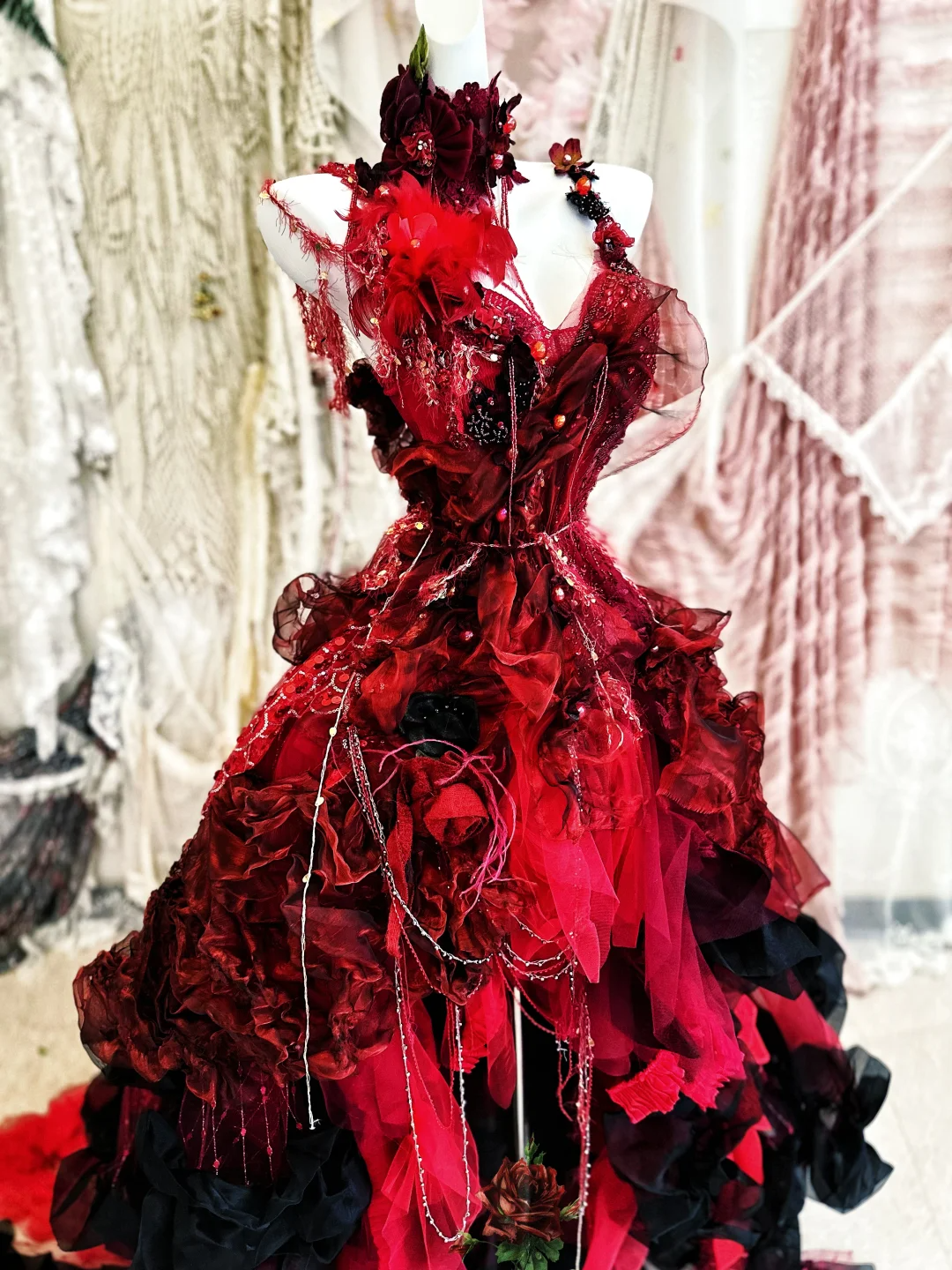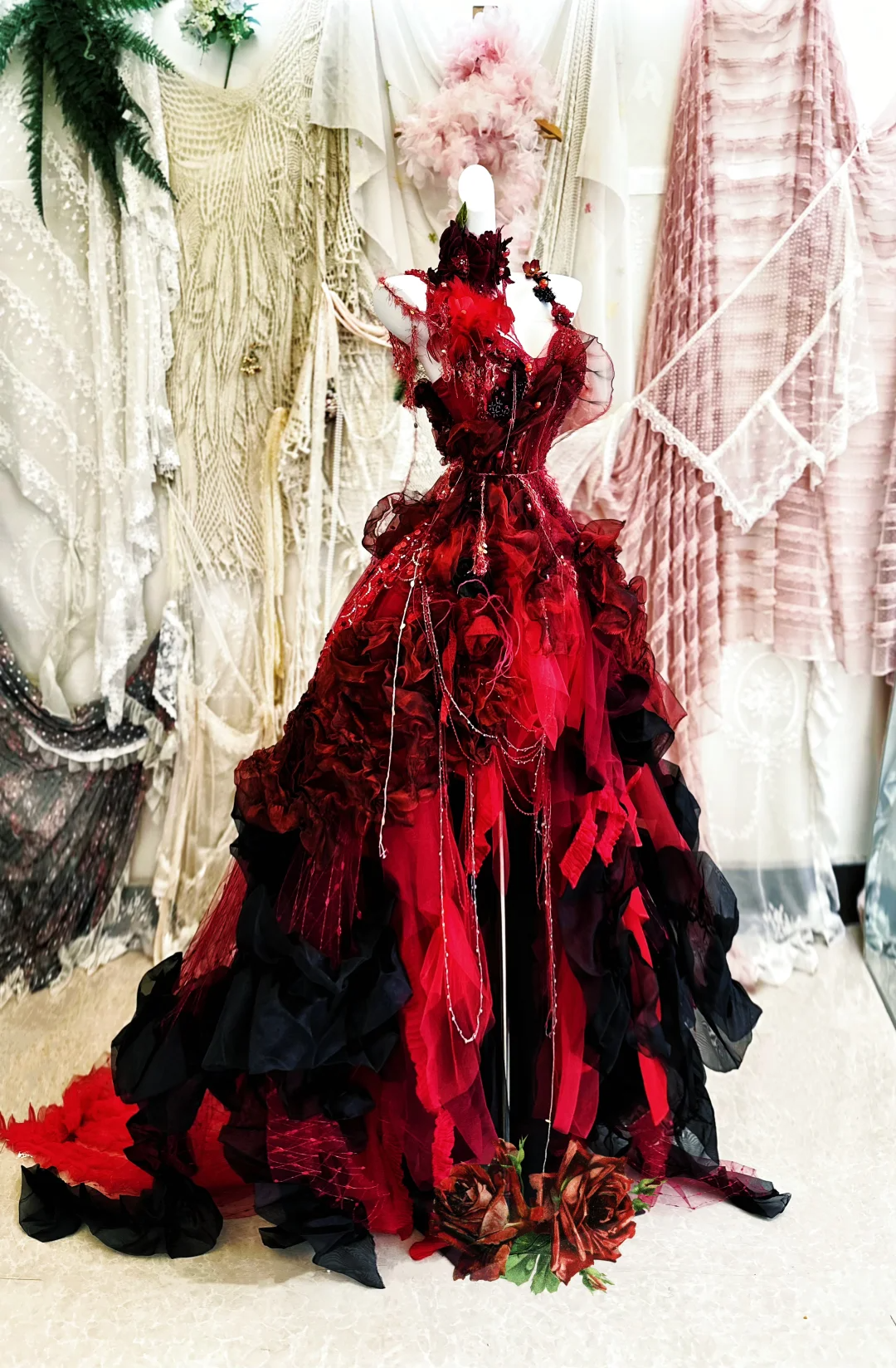 Stunning Burgundy Ball Gown Spaghetti Strap Floral Beaded Tulle Prom Dress 16th Birthday Dress HZ1023