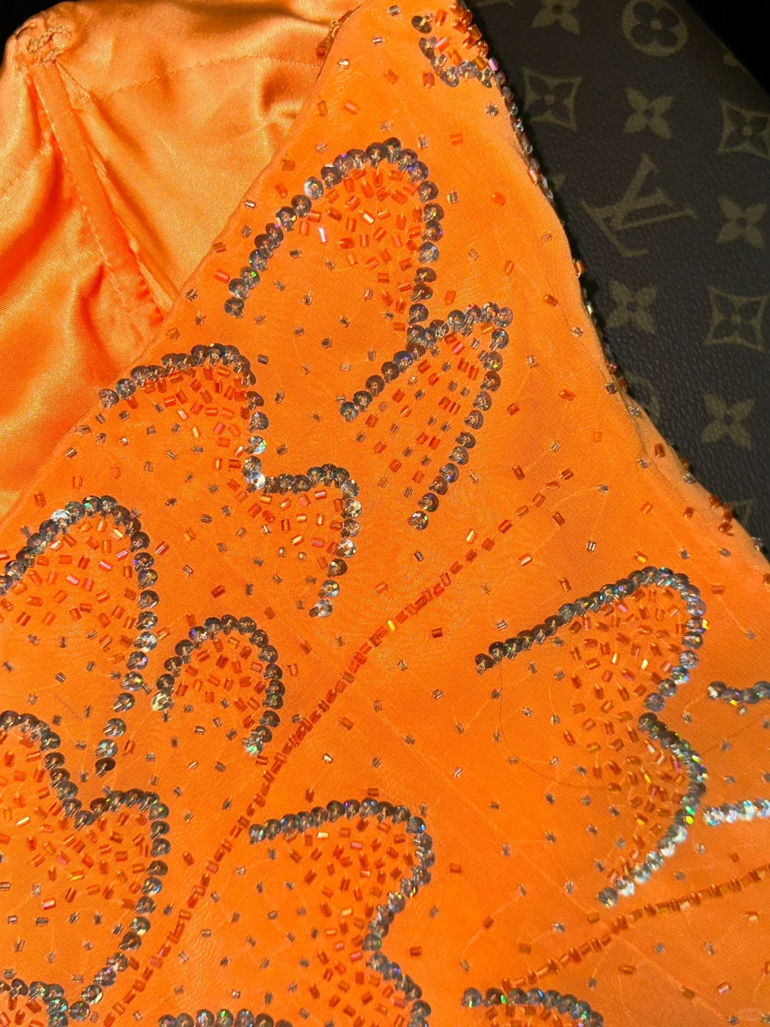 Stunning Mermaid Strapless Beaded Sequin Orange Chiffon Long Prom Dress Party Dress HZ1023