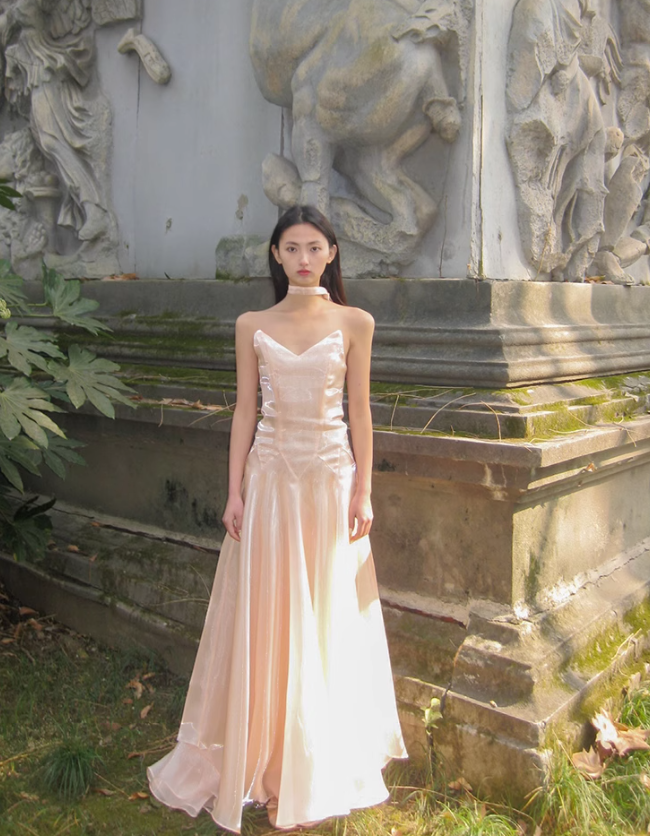 Unique Light Pink A Line Strapless Organza Long Prom Dress 16th Birthday Dress HZ1023