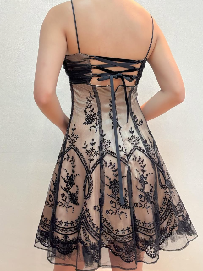 Vintage A Line Spaghetti Strap Embroidery Chiffon Satin Short Homecoming Dress HZ1023