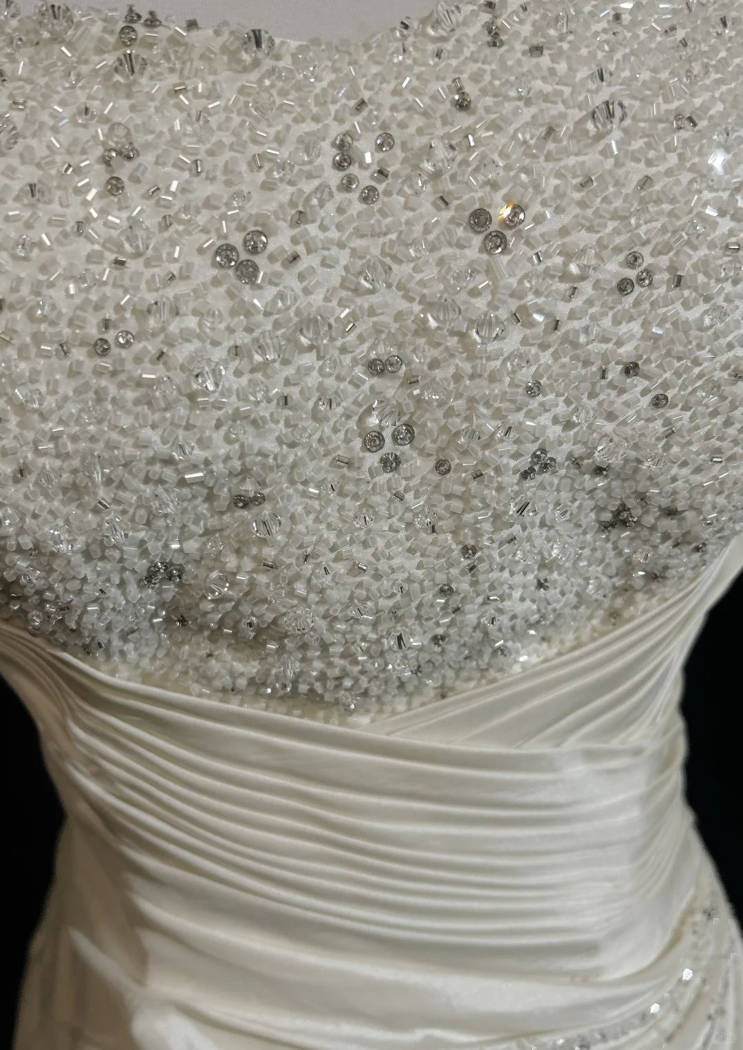Vintage A Line Sweetheart Neck Beaded White Satin Short Homecoming Dress Cocktail Dress HZ1023