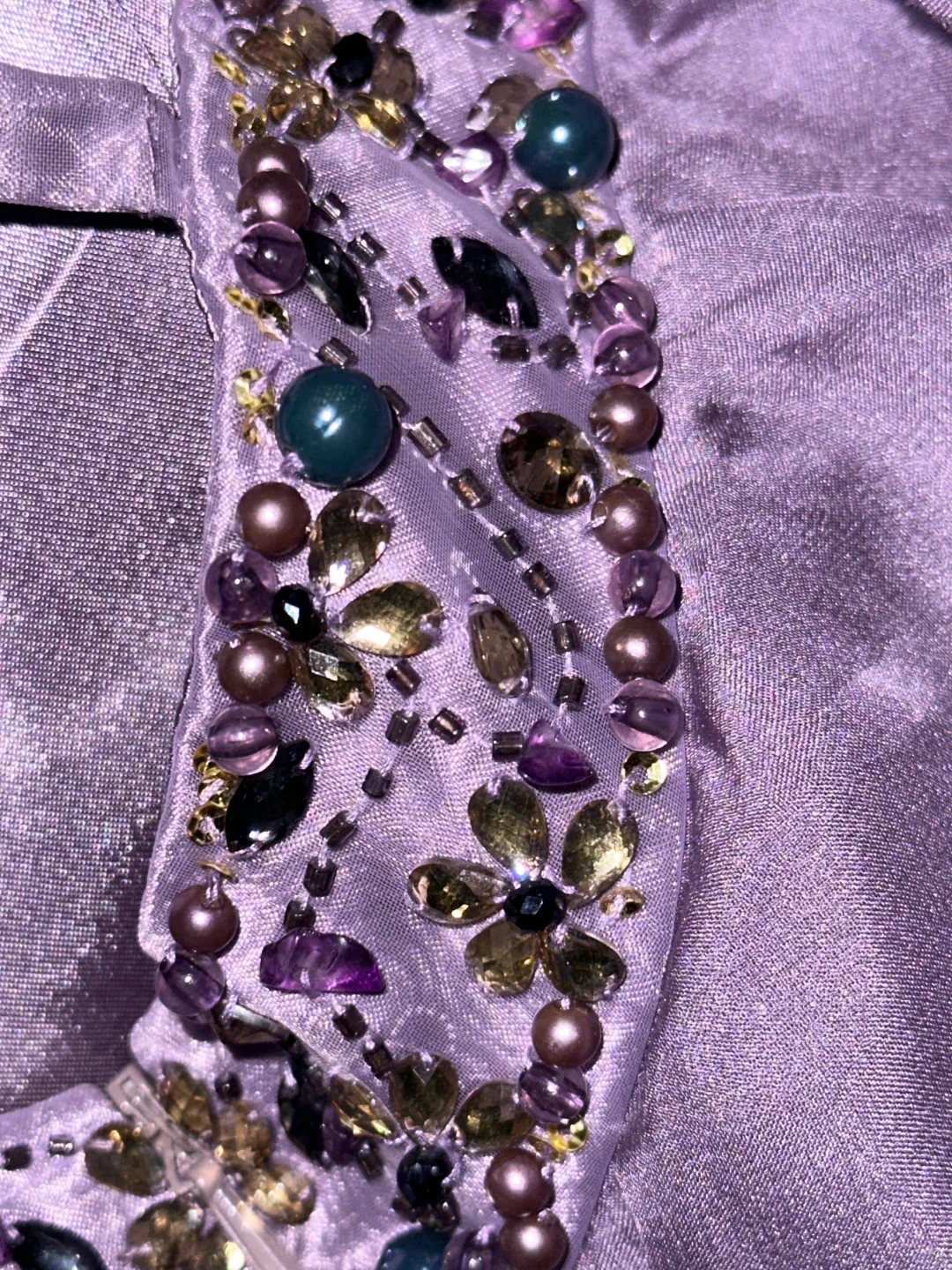 Vintage Mermaid Spaghetti Strap Purple Sequin Beaded Satin Long Sweep Party Dress Evening Dress HZ1023