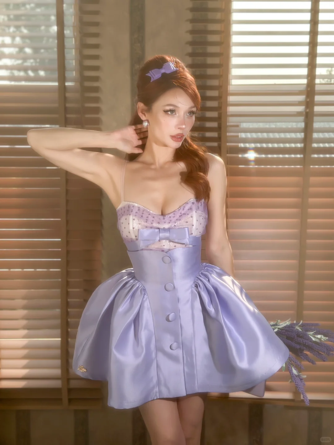 Vintage Purple A Line Spaghetti Strap Satin Short Party Dress Homecoming Dress HZ1023