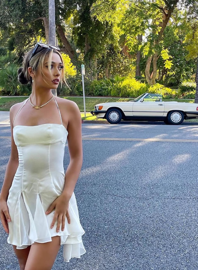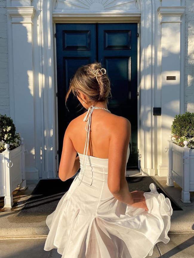 White A Line Halter Chiffon Satin Mini Homecoming Dress HZ1023