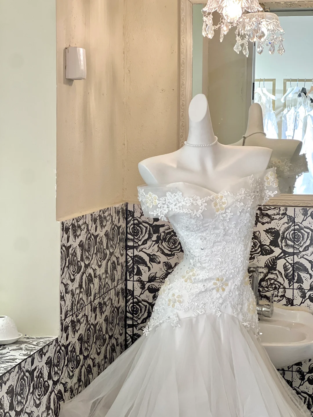 White Mermaid Off the Shoulder Appliques Layered Organza Wedding Dress Prom Dress HZ1023