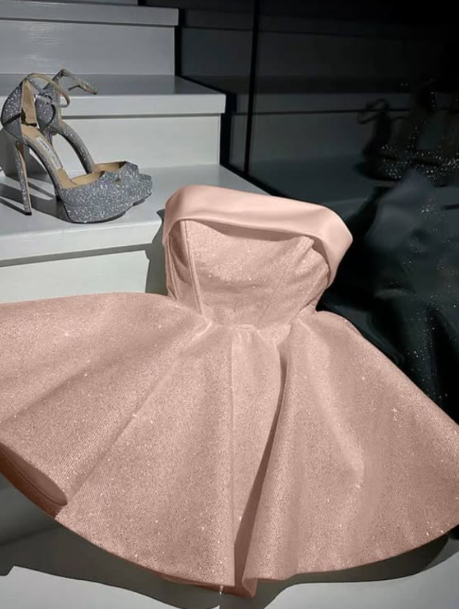 White Princess A Line Strapless Sequin Short Prom Dress Homecoming Dress HZ1023