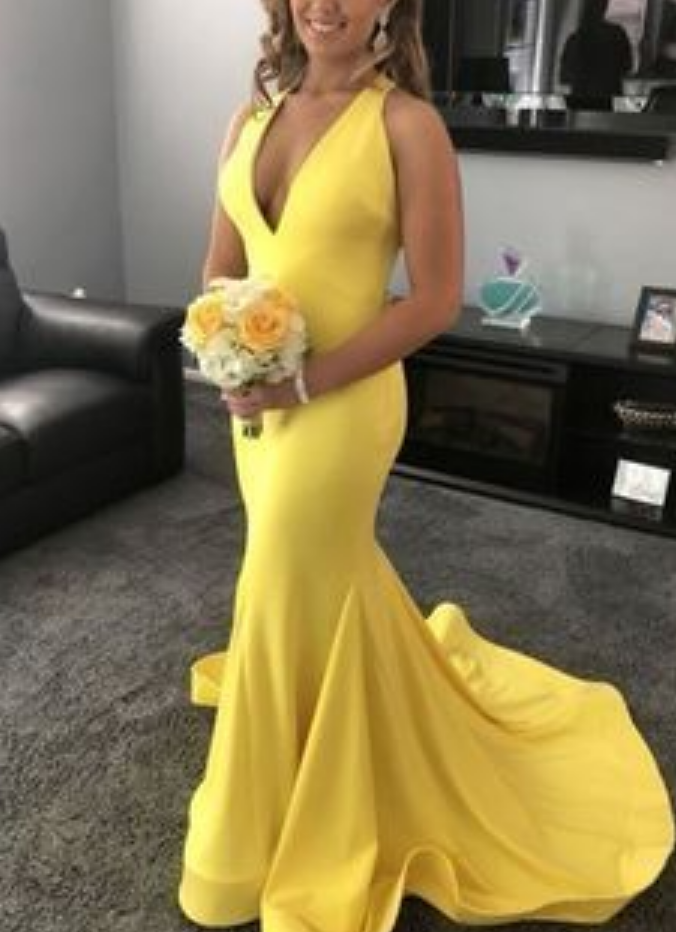 yellow mermaid formal evening dress Long Prom Dresses HZ1023